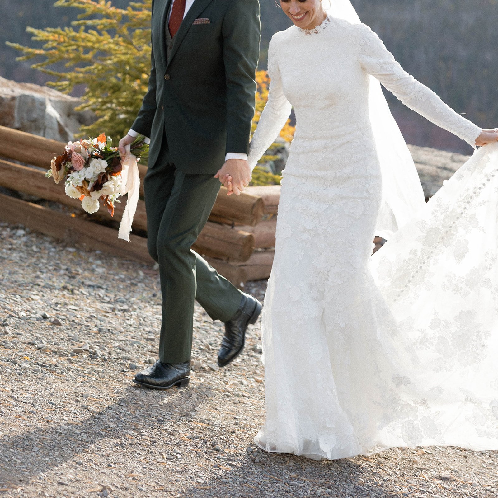 The celebration carried effortlessly into the next day. Blake spent the morning at the house with his family, soaking in a slow, peaceful start in the mountains, coffee on the porch, laughter in the kitchen, and quiet moments before the excitement ahead. Meanwhile, Hannah got ready at the Western surrounded by her best friends and mom, a morning filled with joy, nerves, and the kind of memories that only happen once. The historic charm of the hotel made for the most beautiful bridal portraits before it was finally time to head up the mountain for their first look.